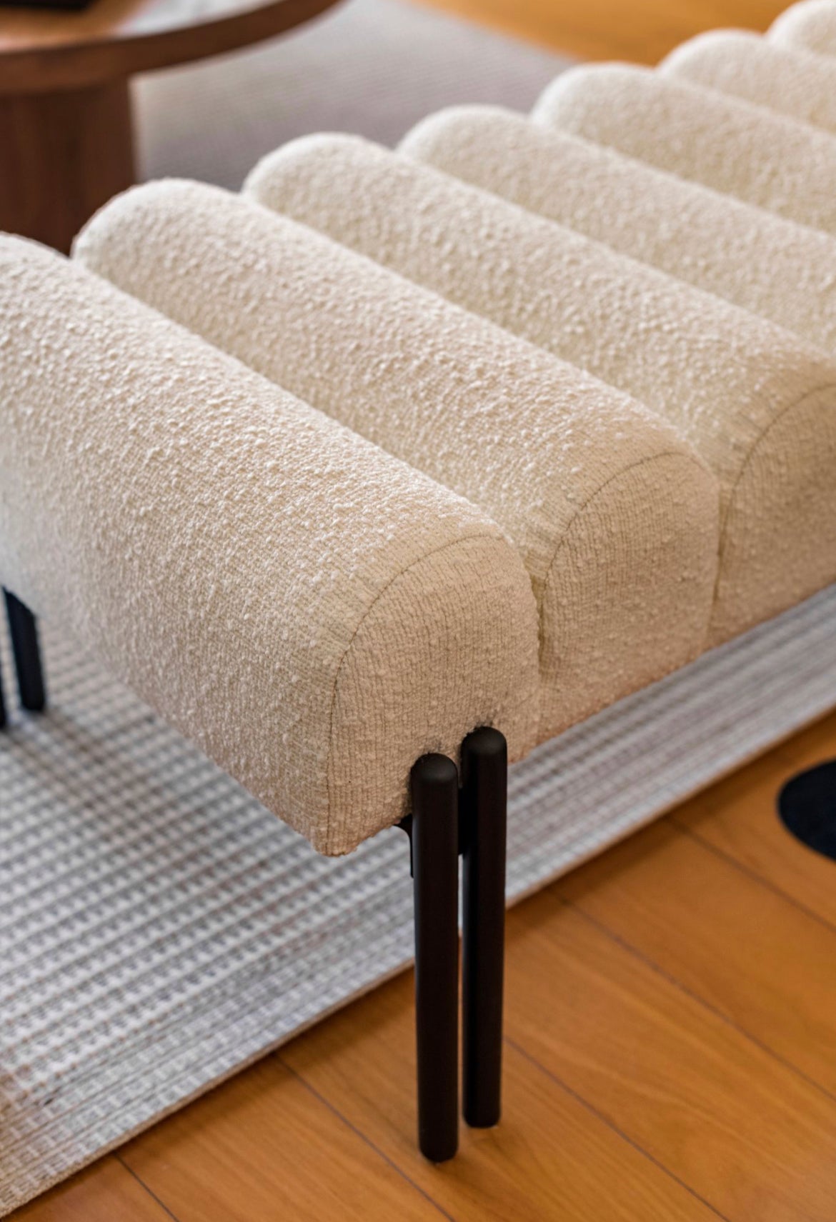 Banqueta Harlow fabricada a mano en Perú. La base metálica está hecha de acero inoxidable pintado al horno en color negro.